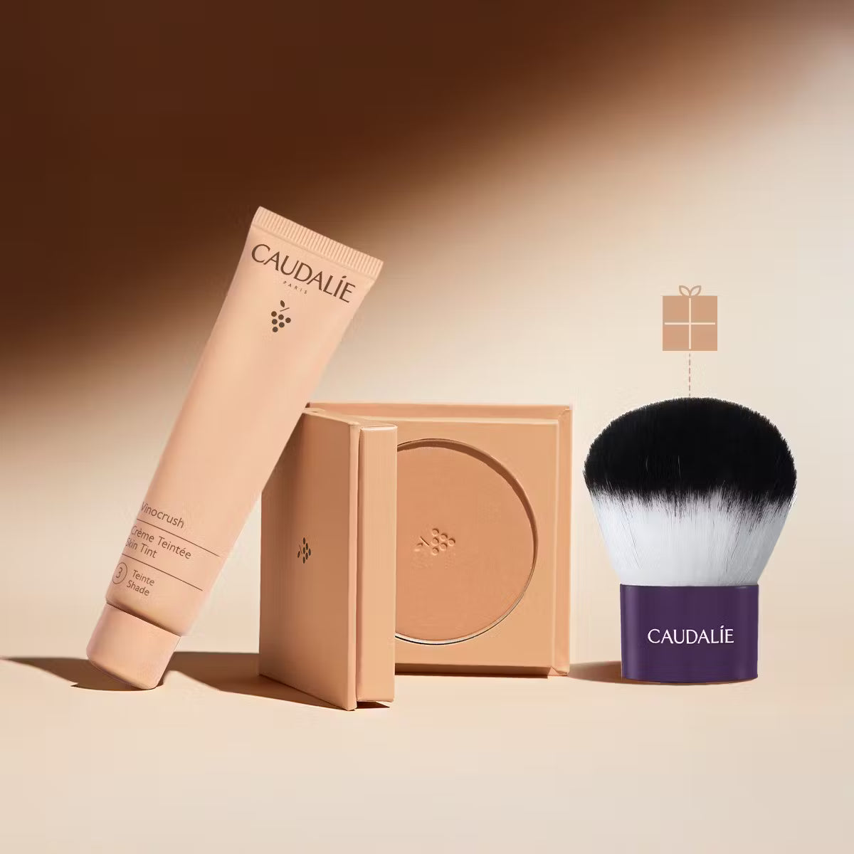 Retrouvez la CC Crème teinte 3, la Poudre Bronzante Longue Tenue et en cadeau : un pinceau Kabuki offert dans notre trio Vinocrush.